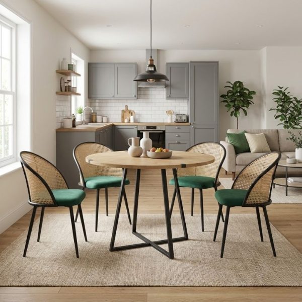 Η τραπεζαρία Roger – Christy αποπνέει σοφιστικέ κομψότητα και διαχρονικό στυλ. Το υφασμάτινο κάθισμα της καρέκλας και το διακριτικό άνοιγμα στην πλάτη δημιουργούν μια ζεστή και φιλόξενη αίσθηση, ενώ τα μαύρα μεταλλικά πόδια προσφέρουν σταθερότητα και σύγχρονο χαρακτήρα. Ιδανική για τη τραπεζαρία του σπιτιού, αλλά και για επαγγελματικούς χώρους όπως καφέ, εστιατόρια ή AirBnB, όπου η αισθητική λεπτομέρεια κάνει τη διαφορά.