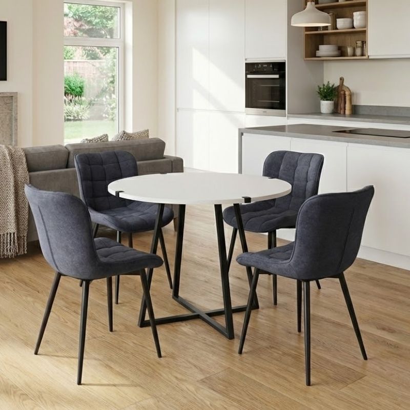 Αρχική σελίδα Έπιπλα εσωτερικού χώρου Σετ τραπεζαρίες Σετ τραπεζαρία 5τμχ Rubes – Chiara Megapap χρώμα λευκό – ανθρακί Ø100×78εκ.