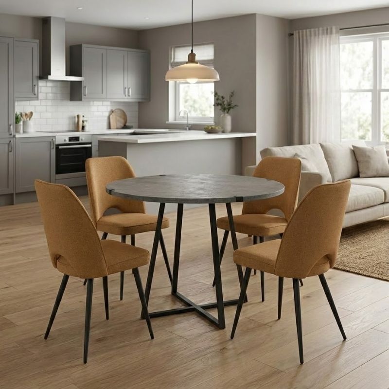 Σετ τραπεζαρία 5τμχ Rubes – Christy Megapap χρώμα γκρι σκυροδέματος – μουσταρδί Ø100×78εκ.