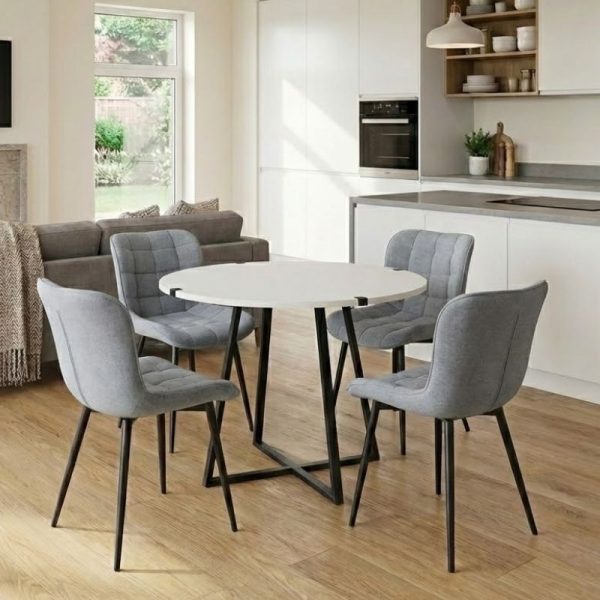 Σετ τραπεζαρία 5τμχ Rubes - Rosa Megapap χρώμα λευκό - γκρι Ø100x78εκ. €237.00 Original price was: €237.00.€189.60Η τρέχουσα τιμή είναι: €189.60.