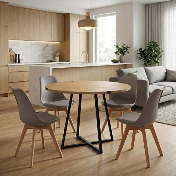 Σετ τραπεζαρία 5τμχ Rubes – Jacob Megapap χρώμα φυσικό οξιάς – κυπαρισσί Ø100×78εκ.