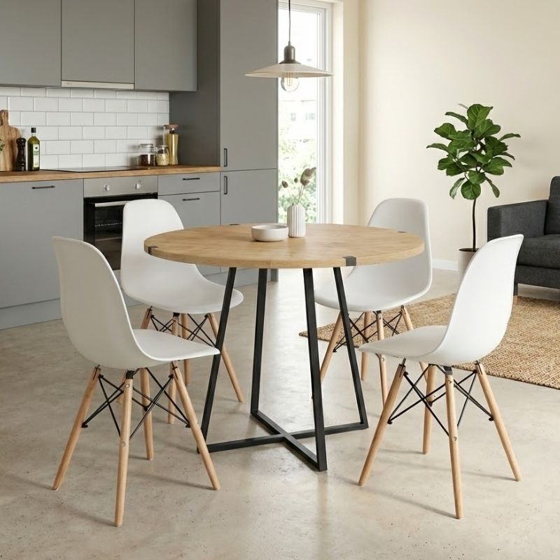 Σετ τραπεζαρία 5τμχ Rubes – Nova Megapap χρώμα φυσικό οξιάς – λευκό Ø100x78εκ.