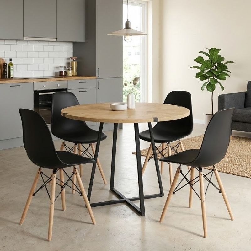 Σετ τραπεζαρία 5τμχ Rubes – Nova Megapap χρώμα φυσικό οξιάς – μαύρο Ø100x78εκ.