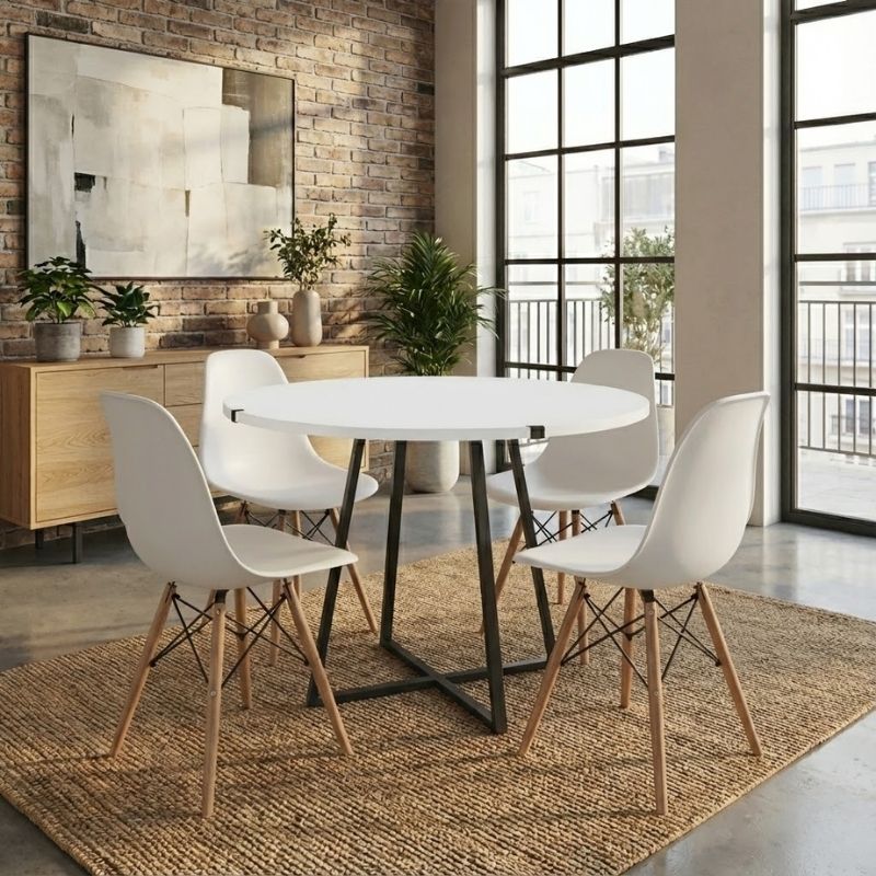 Σετ τραπεζαρία 5τμχ Rubes – Nova Megapap χρώμα λευκό Ø100x78εκ.