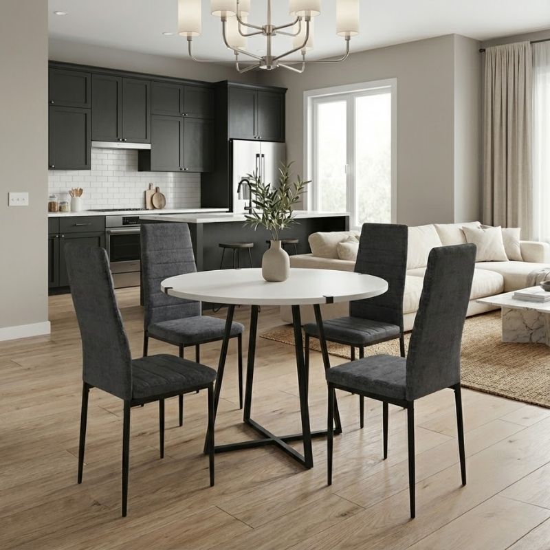 Σετ τραπεζαρία 5τμχ Rubes – Rosa Megapap χρώμα λευκό – γκρι Ø100×78εκ.