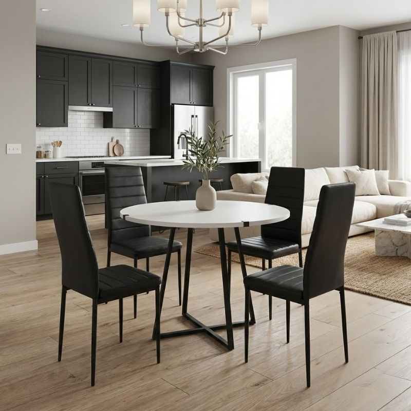 Σετ τραπεζαρία 5τμχ Rubes – Rosa Megapap χρώμα λευκό – μαύρο Ø100×78εκ.