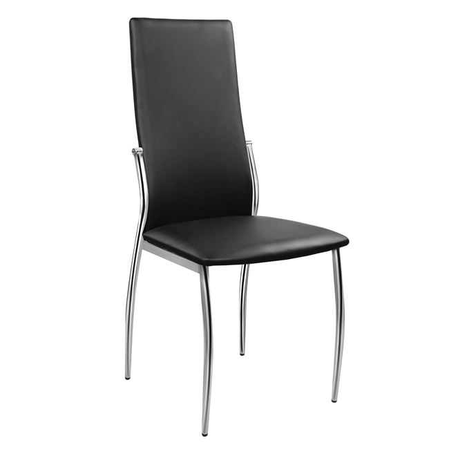 Τέσσερις καρέκλες κουζίνας από μεταλλικό σκελετό χρωμίου και επένδυση από δερματίνη σε μαύρο χρώμα.