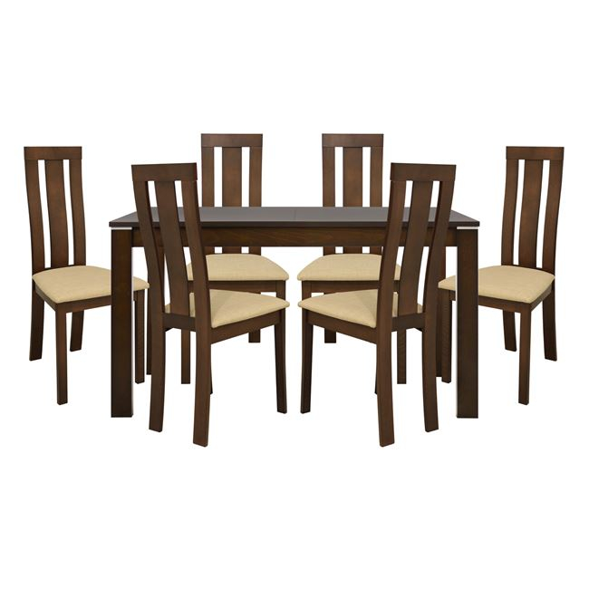Το τραπέζι είναι κατασκευασμένο από μασίφ σκελετό,mdf επιφάνεια σε καρυδί χρώμα και διαθέτει επέκταση 30 πόντους.