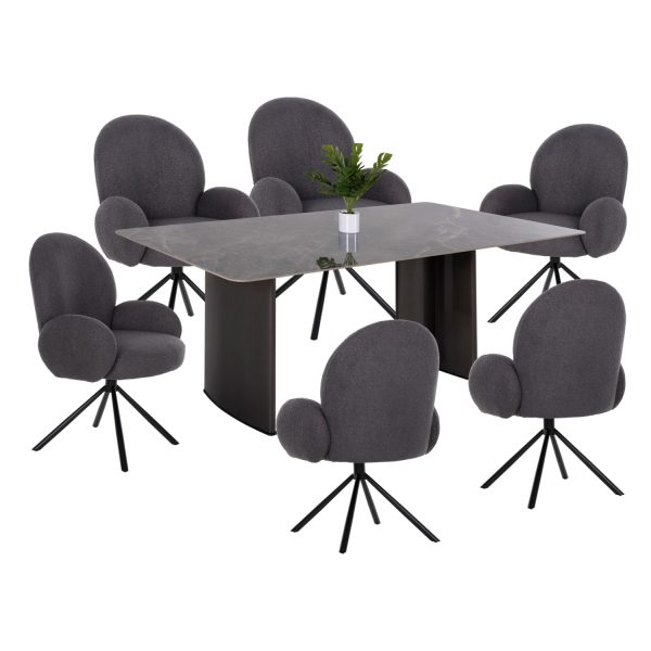 Καρέκλες: Τα πόδια είναι μεταλλικά, η πλάτη είναι ξύλινη, ενώ το κάθισμα είναι από PU συνθετικό δέρμα.