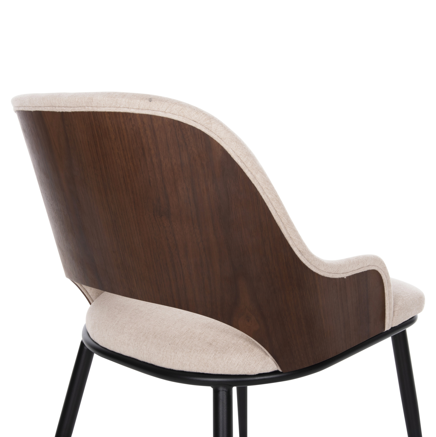 Αυτό το σετ τραπεζαρίας εσωτερικού χώρου αποτελείται από ένα τραπέζι DENTY και 4 καρέκλες DELF. Το DENTY είναι ένα στρογγυλό τραπέζι για την τραπεζαρία, με φαλτσοκομμένη επιφάνεια από MDF με καπλαμά δρυός σε ΚΑΡΥΔΙ χρώμα. Η επιφάνεια αυτή στηρίζεται σε μία πανέμορφη ξύλινη κυλινδρική βάση με ίδιο χρωματισμό. Οι καρέκλες DELF έχουν επένδυση με ύφασμα σε ΜΠΕΖ απόχρωση και ΜΑΥΡΑ μεταλλικά πόδια. Αυτό, όμως, που ξεχωρίζει είναι ότι ολόκληρη η πλάτη είναι ξύλινη σε ΚΑΡΥΔΙ χρώμα κι είναι κυρτή και αναπαυτική.