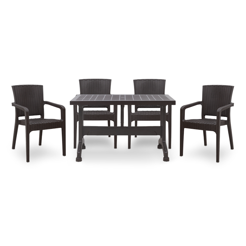 Σετ τραπεζαρία κήπου Callan Megapap 5τμχ πολυπροπυλενίου τραπέζι 120×70 – πολυθρόνα recycled χρώμα καφέ S_GP046-0002,1+GP046-0001,2×4