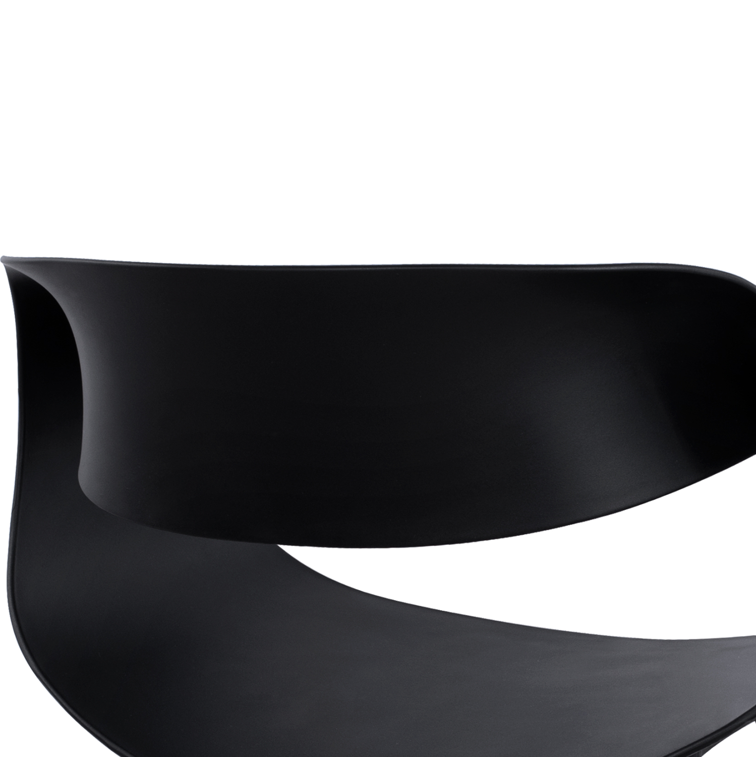 Ένα στρογγυλό τραπέζι με πόδια από ξύλο οξιάς σε ΦΥΣΙΚΟ χρώμα και επιφάνεια από MDF σε ΜΑΥΡΟ χρώμα, και 4 καρέκλες με πόδια από ξύλο οξιάς σε φυσικό χρώμα και κάθισμα με πλάτη από πολυπροπυλένιο σε ΜΑΥΡΟ χρώμα.