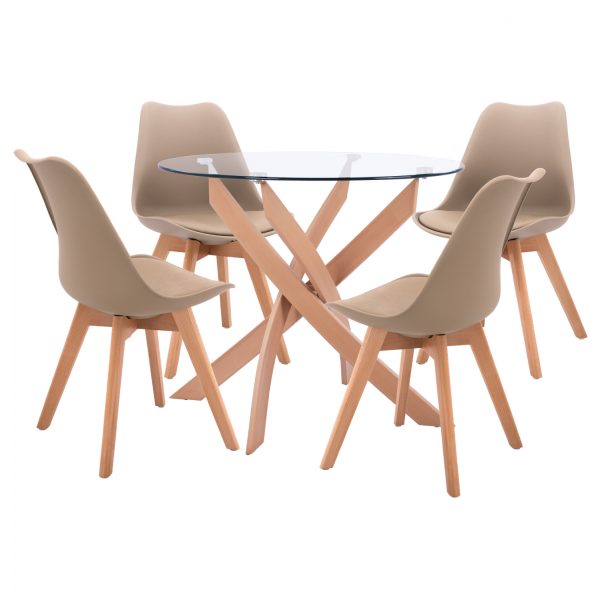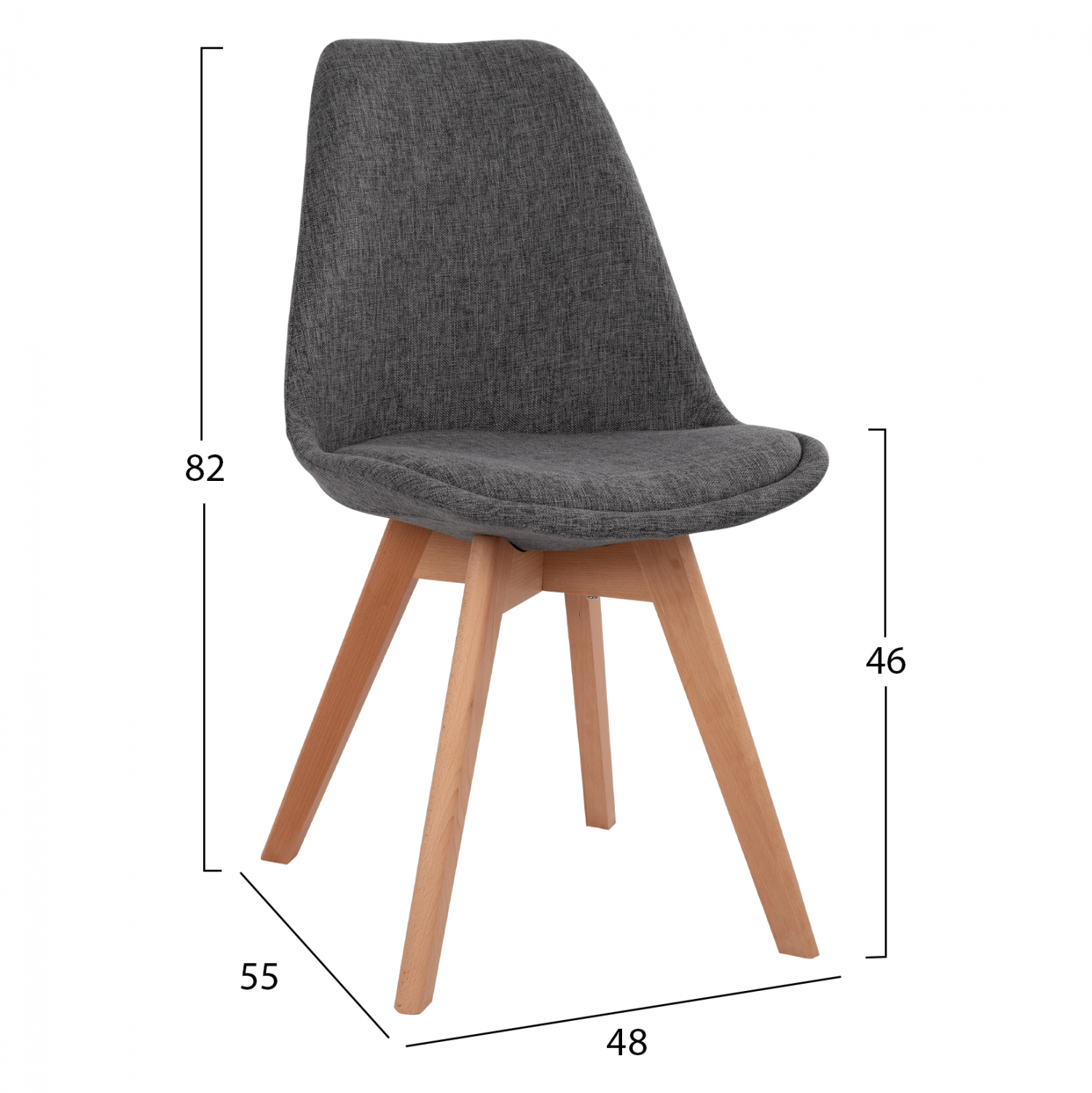 Τέσσερεις μοντέρνες καρέκλες σε έναν άψογο συνδυασμό ξύλου και υφάσματος σε γκρι και φυσική απόχρωση. Μια πρόταση που θα αναδείξει κάθε γωνία του σπιτιού σας.