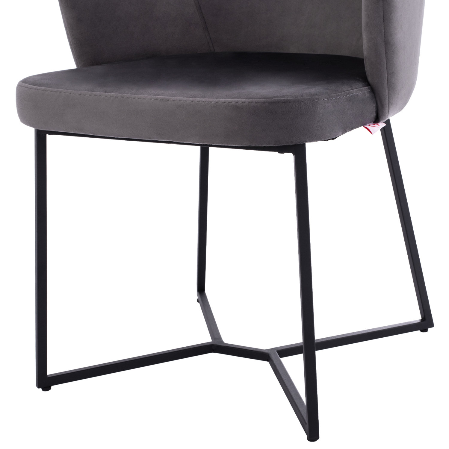HΜ10638—Σετ τραπεζαρίας με τραπέζι και 6 πολυθρόνες. Το τραπέζι είναι μεγάλο, μοντέρνο κι επιβλητικό σε χρώμα καρυδί. Είναι κατασκευασμένο από «φαλτσοκομμένη» επιφάνεια MDF με καπλαμά από ξύλο καρυδιάς σε ρουστίκ στυλ και τα πόδια είναι μεταλλικά σε διάταξη πλαγιαστού Λ. Οι πολυθρόνες είναι ΓΚΡΙ σε μοντέρνα γραμμή με μεταλλικά χιαστί πόδια. Το χαρακτηριστικό αυτής της πολυθρόνας είναι ότι είναι ολόκληρη επενδυμένη με βελούδινο ύφασμα και το εξωτερικό της μεσαίου ύψους πλάτης φέρει γεωμετρικές ραφές στην βελούδινη επένδυση, πράγμα που επιτείνει τον ιδιαίτερο χαρακτήρα αυτής της πολυθρόνας.