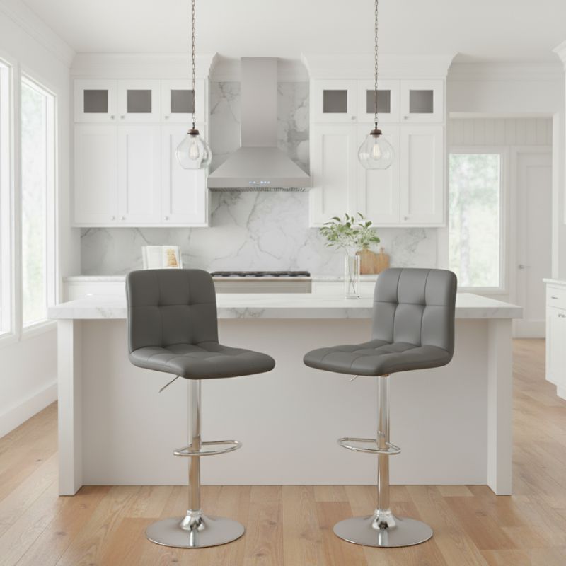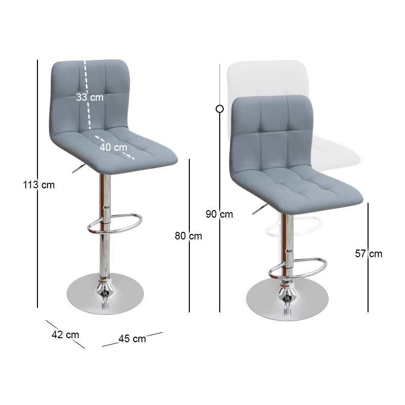 Σκαμπό μπαρ Carmelo Megapap με ρυθμιζόμενο ύψος PU γκρι – βάση χρωμίου 45x42x90/113εκ.
