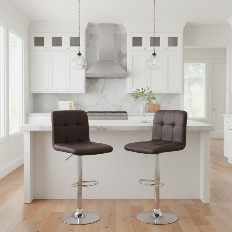 Σκαμπό μπαρ Carmelo Megapap με ρυθμιζόμενο ύψος PU καφέ – βάση χρωμίου 45x42x90/113εκ.