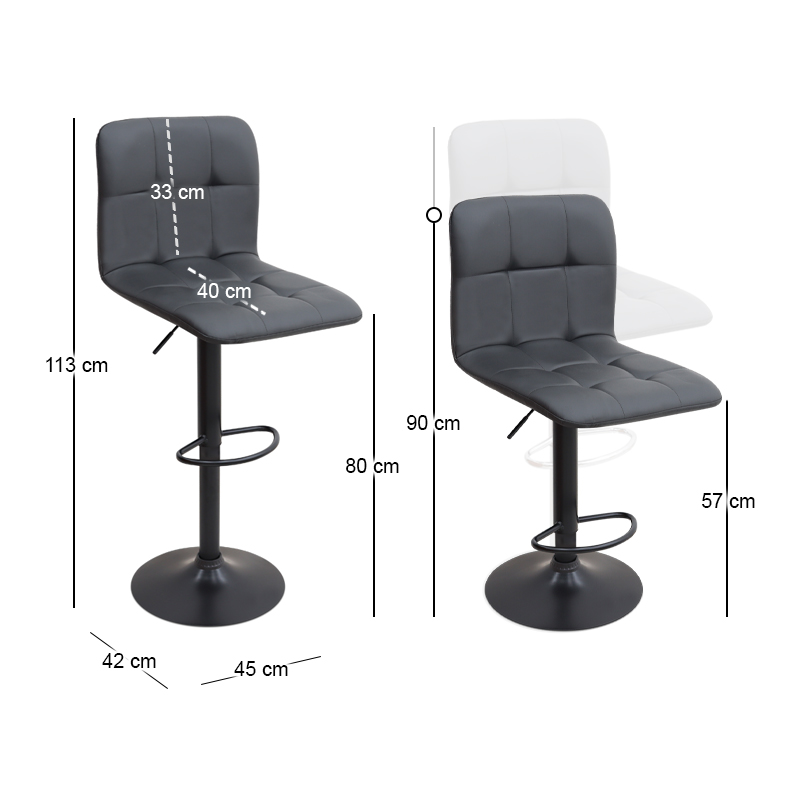 Σκαμπό μπαρ Carmelo Megapap με ρυθμιζόμενο ύψος από τεχνόδερμα χρώμα μαύρο – βάση μαύρο ματ 45x42x90/113εκ.