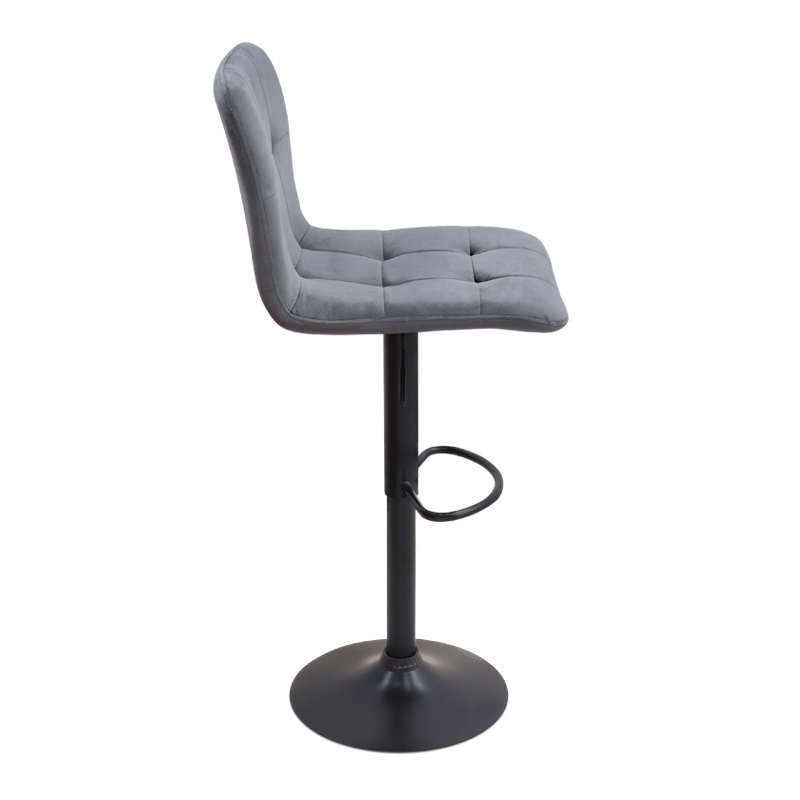 Σκαμπό μπαρ Carmelo Megapap με ρυθμιζόμενο ύψος βελούδο γκρι – βάση μαύρο ματ 45x42x90/113εκ.