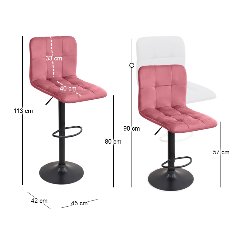 Σκαμπό μπαρ Carmelo Megapap με ρυθμιζόμενο ύψος από βελούδο χρώμα σάπιο μήλο – βάση μαύρο ματ 45x42x90/113εκ.