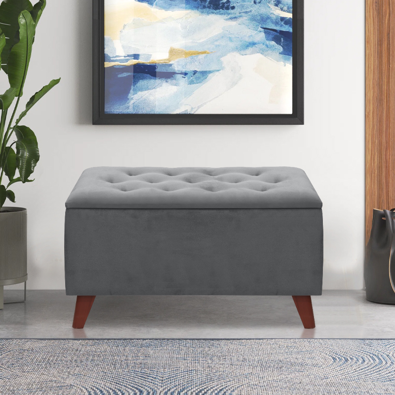 Σκαμπώ – Ταμπουρέ Lotus Megapap βελούδινο χρώμα γκρι 90x40x50εκ.