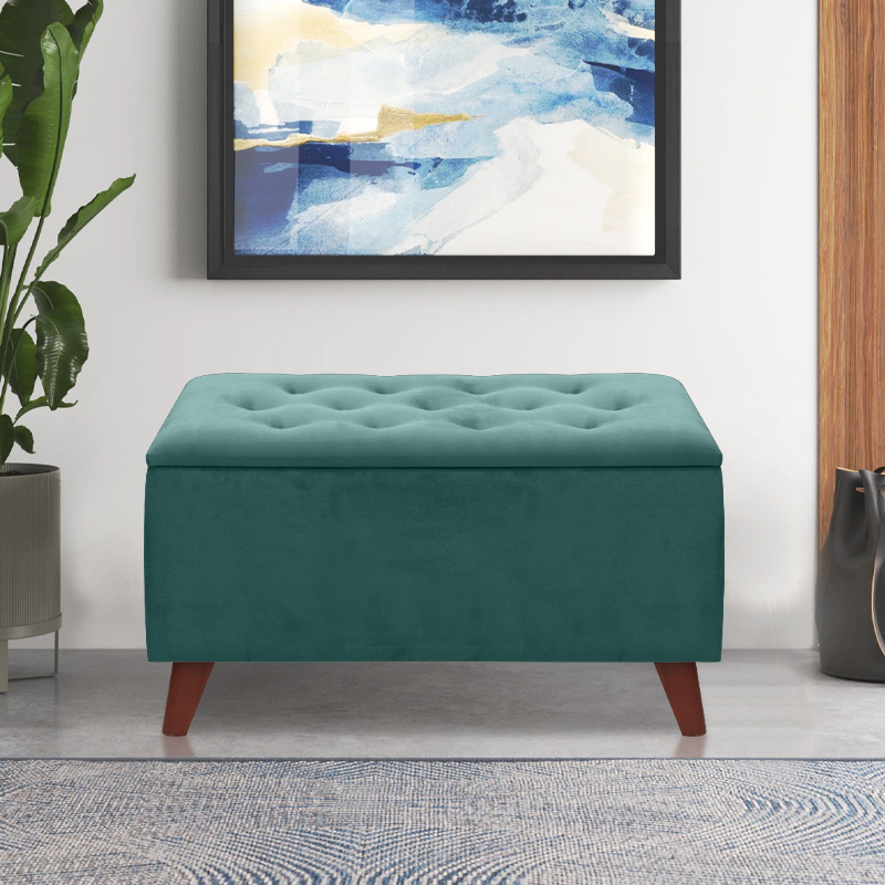 Σκαμπώ – Ταμπουρέ Lotus Megapap βελούδινο χρώμα κυπαρισσί 90x40x50εκ.