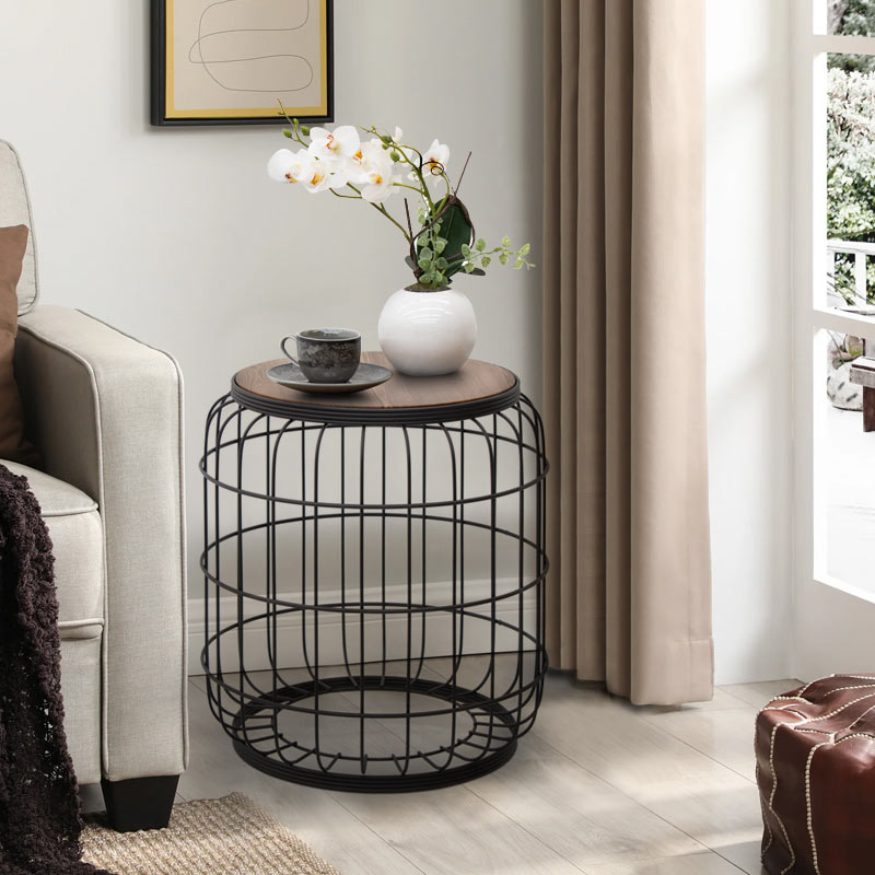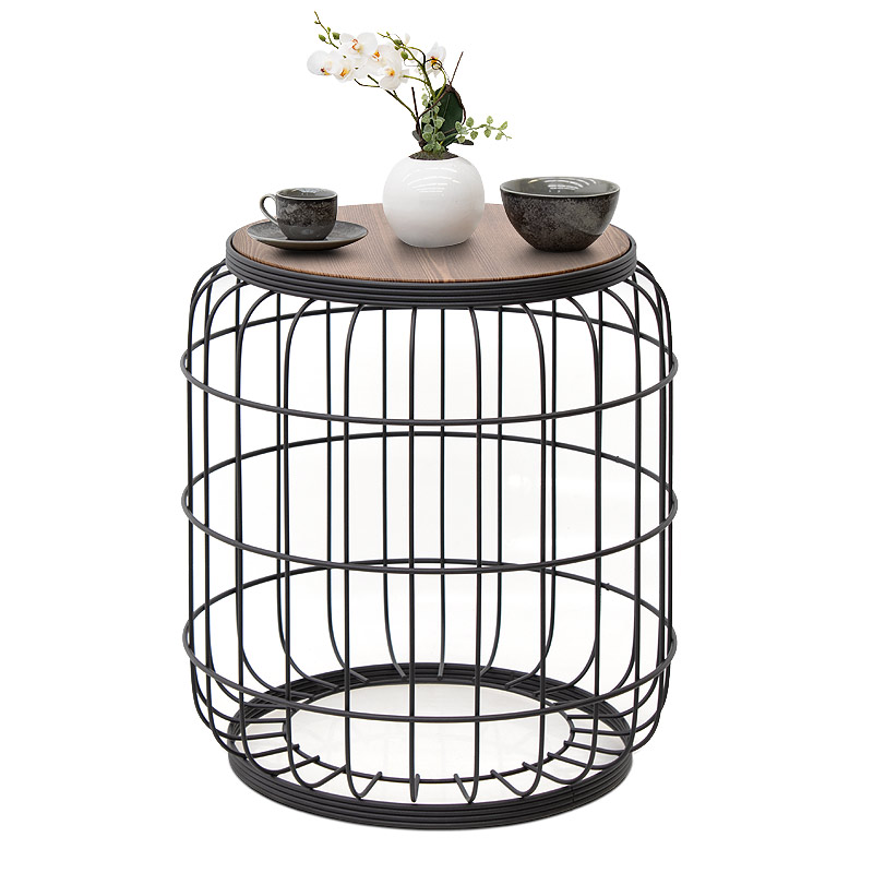 Σκαμπώ – τραπεζάκι βοηθητικό Muller Megapap μεταλλικό – Mdf χρώμα μαύρο – καρυδί 35x35x47εκ.