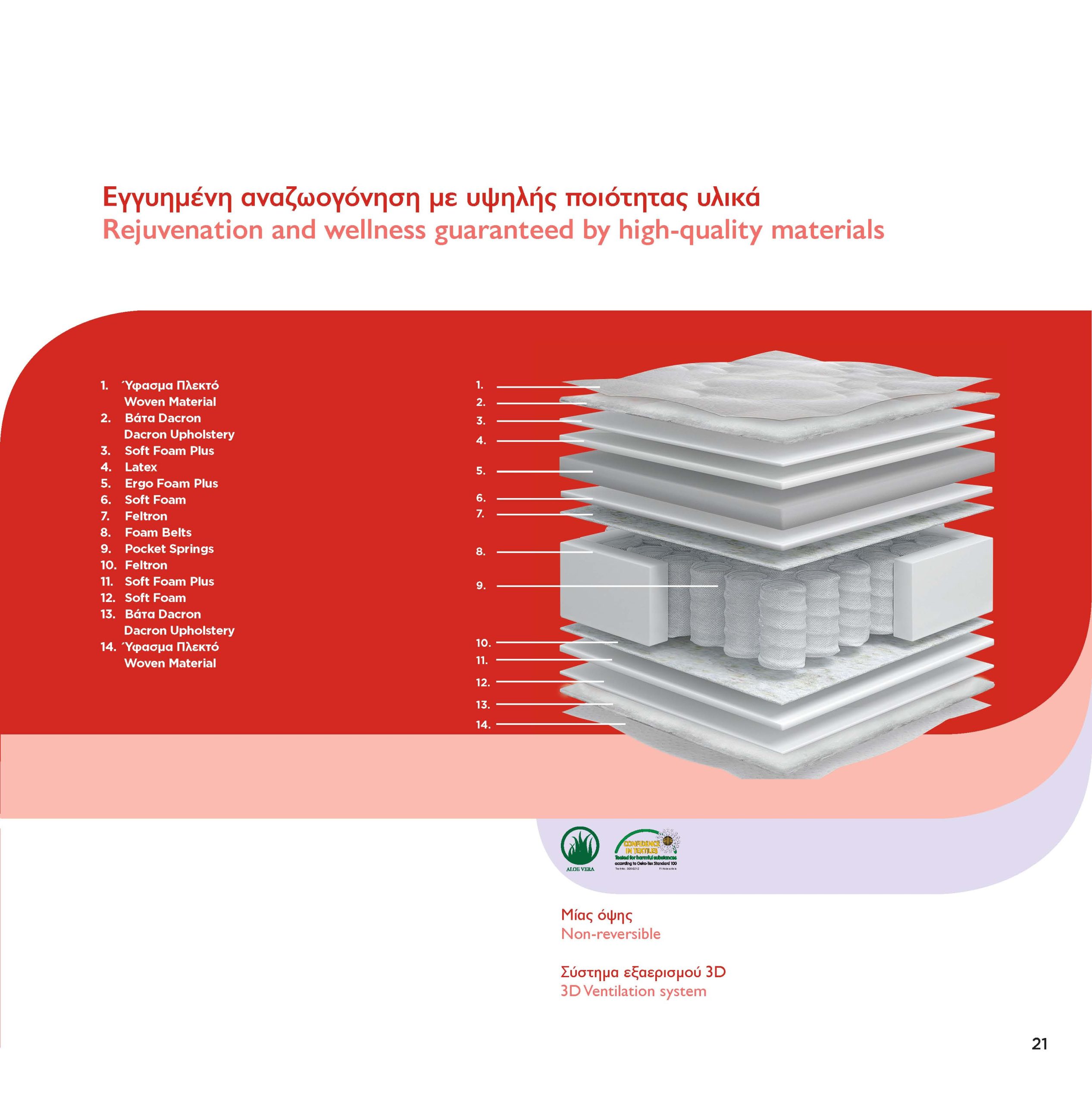 Εγγυημένη αναζωογόνηση με υψηλής ποιότητας υλικά. Η άνεση και η ανθεκτικότητα εξασφαλίζουν ισορροπία στον ύπνο, συνδυάζοντας εξαιρετική ποιότητα και αξία.