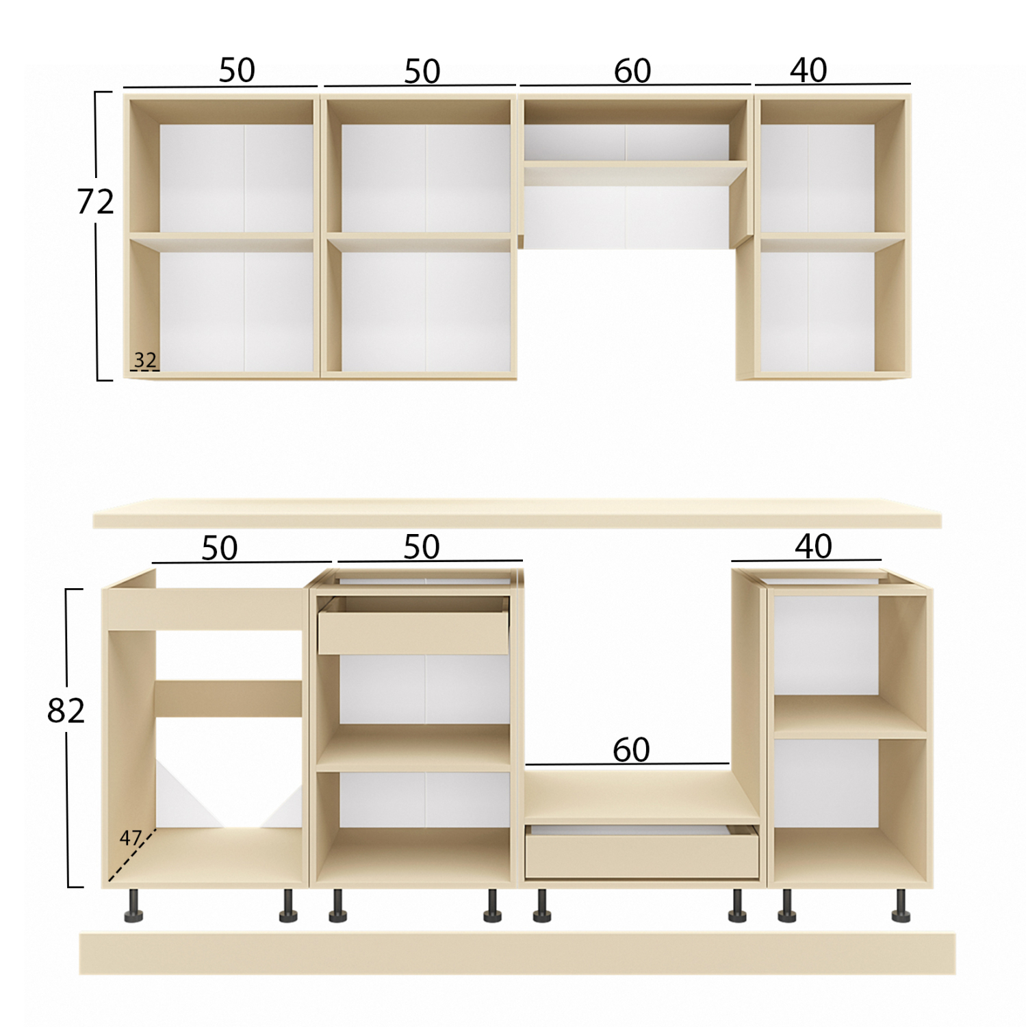 Το κύριο υλικό κατασκευής της κουζίνας είναι η εξαιρετικής ποιότητας μελαμίνη με πάχος 16 χιλιοστά. Η μελαμίνη είναι είδος ξύλου σε μορφή μοριοσανίδας. Οι μοριοσανίδες είναι προϊόντα που έχουν τη μορφή πλάκας (panel). Ως υλικό είναι πολύ ανθεκτικό και με μεγάλη σκληρότητα. Άρα, πρόκειται για ένα συνθετικό υλικό με πολύ σκληρή επιφάνεια, με αποτέλεσμα να είναι πολύ ανθεκτική στις γρατζουνιές, στην τριβή και τους λεκέδες.