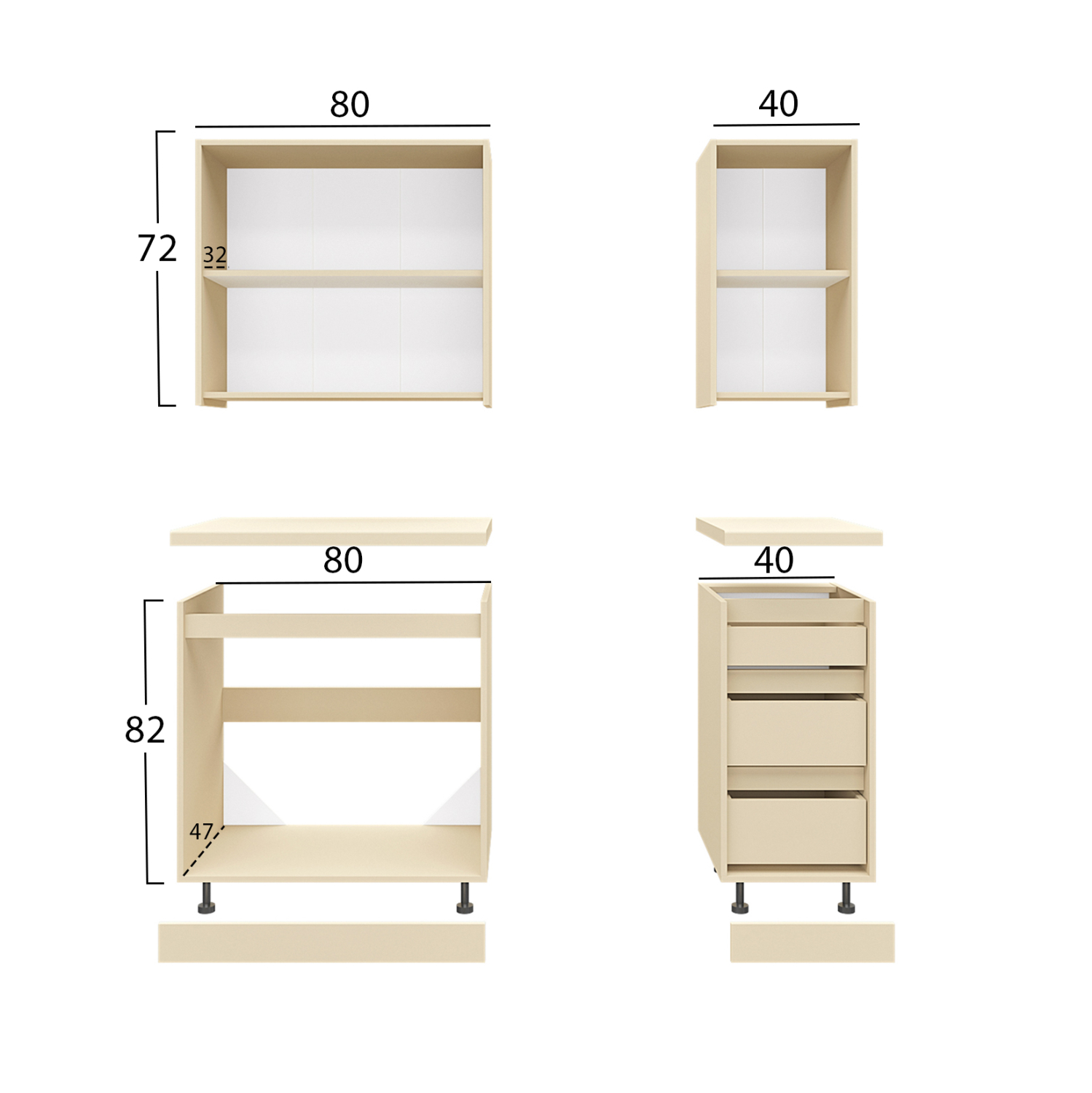Το κύριο υλικό κατασκευής της κουζίνας είναι η εξαιρετικής ποιότητας μελαμίνη με πάχος 16 χιλιοστά. Η μελαμίνη είναι είδος ξύλου σε μορφή μοριοσανίδας. Οι μοριοσανίδες είναι προϊόντα που έχουν τη μορφή πλάκας (panel). Ως υλικό είναι πολύ ανθεκτικό και με μεγάλη σκληρότητα. Άρα, πρόκειται για ένα συνθετικό υλικό με πολύ σκληρή επιφάνεια, με αποτέλεσμα να είναι πολύ ανθεκτική στις γρατζουνιές, στην τριβή και τους λεκέδες.