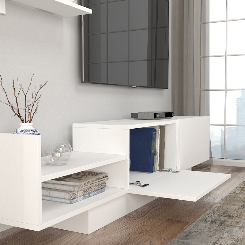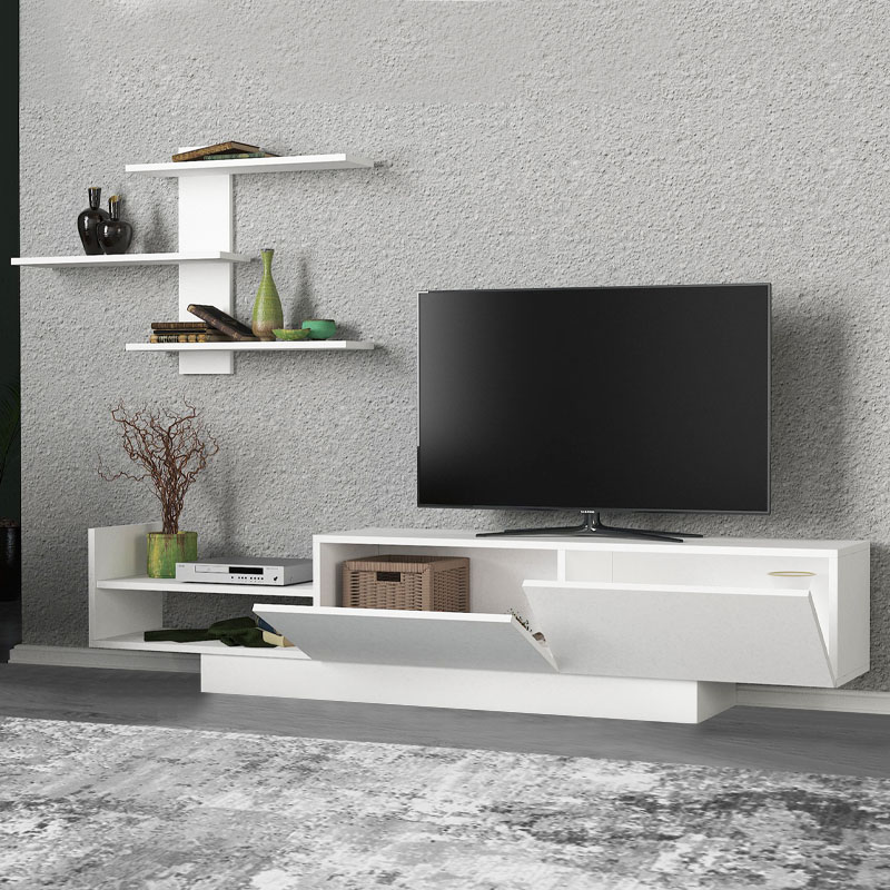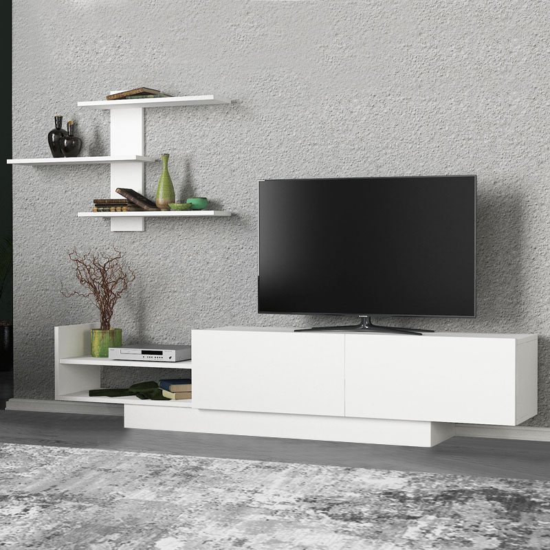 Σύνθεση τηλεόρασης Egemen Megapap από μελαμίνη χρώμα λευκό 180x32x40εκ.