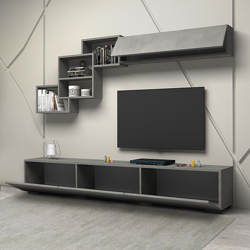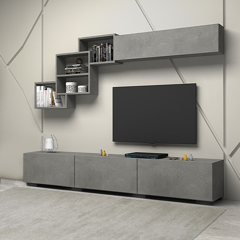 Αρχική σελίδα Έπιπλα εσωτερικού χώρου Συνθέσεις σαλονιού Σύνθεση τηλεόρασης Free Megapap από μελαμίνη χρώμα γκρι σκυροδέματος 210x35x38εκ.
