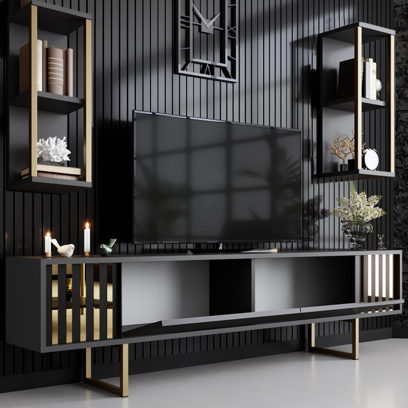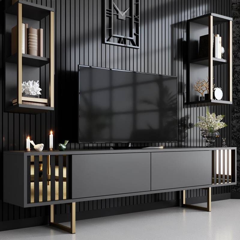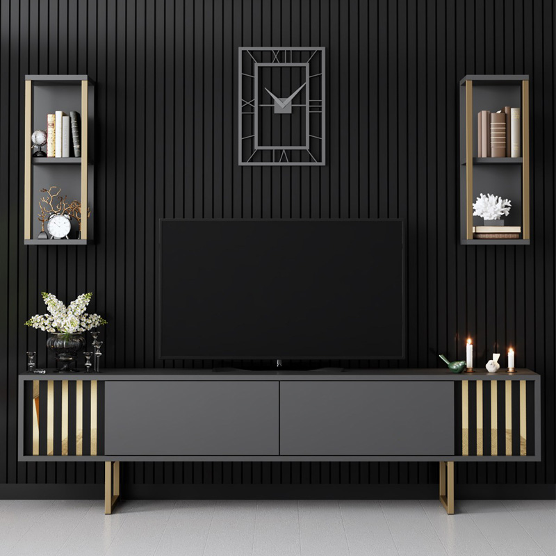 Σύνθεση τηλεόρασης Goldline Megapap χρώμα ανθρακί – χρυσό 180x30x48εκ.