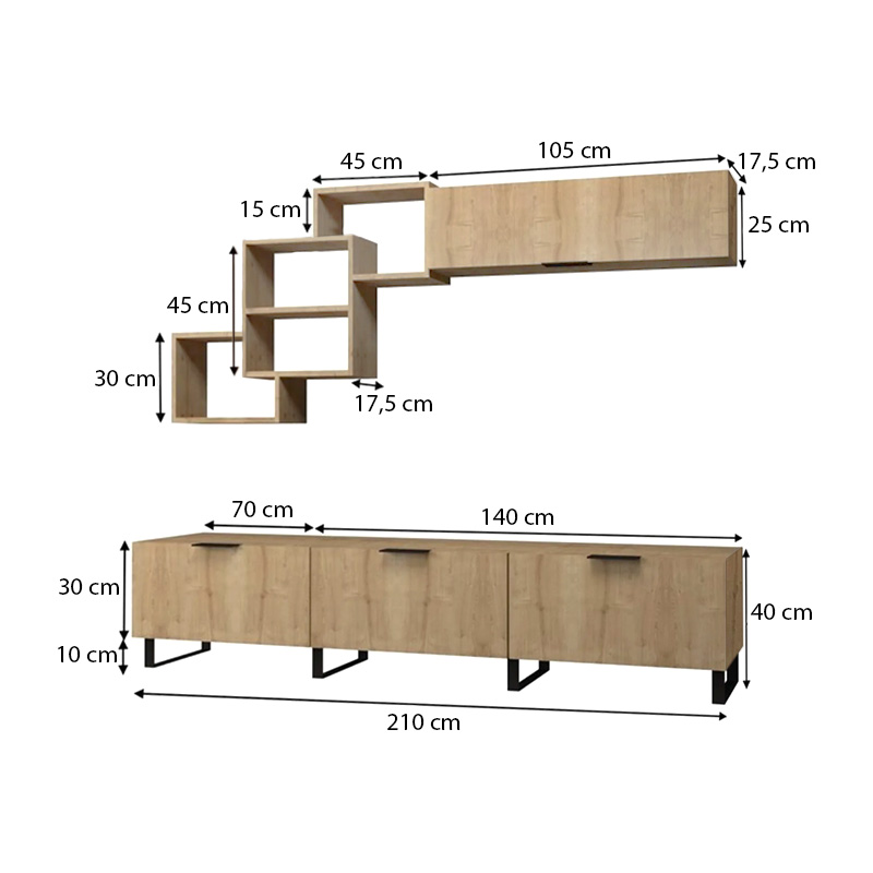 - Διαστάσεις επίπλου τηλεόρασης: Μήκος 210 x Βάθος 35 x Ύψος 50 εκ.