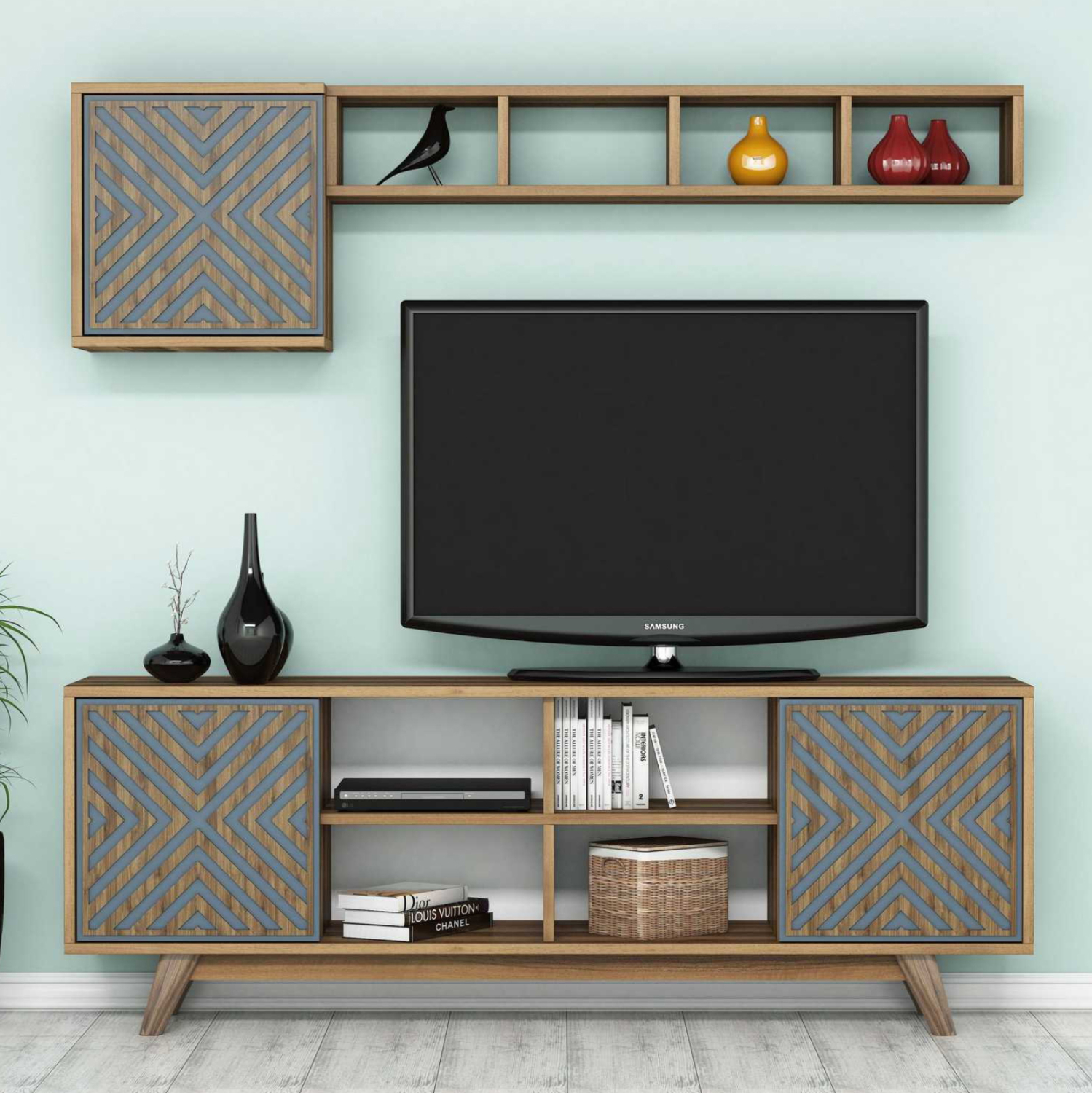 Το ΗΜ9516.02 είναι μια μοντέρνα και λειτουργική σύνθεση τηλεόρασης σε ΚΑΡΥΔΙ χρώμα, που θα ομορφύνει το σαλόνι σας! Αποτελείται από το κυρίως έπιπλο και από ένα ντουλάπι τοίχου και όμορφα ραφάκια. Το κυρίως έπιπλο είναι μακρύ και διαθέτει δυο ντουλάπια δεξιά-αριστερά με όμορφο σχέδιο στις ΓΑΛΑΖΙΕΣ πόρτες. Στην μέση υπάρχει ανοιχτός χώρος τοποθέτησης αντικειμένων χωρισμένος σε 4 μέρη. Η σύνθεση ολοκληρώνεται με ένα ντουλάπι τοίχου με ΓΑΛΑΖΙΑ πόρτα και ένα μακρόστενο ράφι χωρισμένο επίσης σε 4 μέρη. Μια σύνθεση που θα αλλάξει και θα αναβαθμίσει την εικόνα του σαλονιού σας!