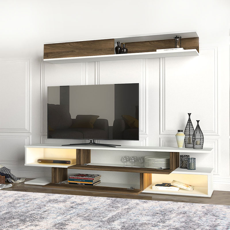 Σύνθεση τηλεόρασης Manet Megapap από μελαμίνη με LED χρώμα λευκό – καρυδί 180×29,5×39εκ.