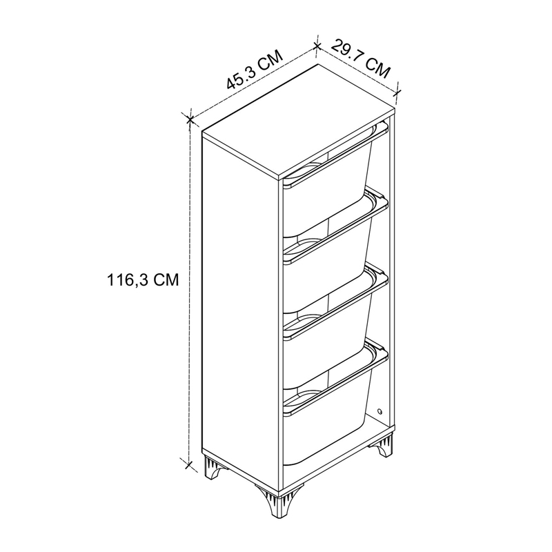 • Διαθέτει τέσσερα συρτάρια κατασκευασμένα από πολυπροπυλένιο για τοποθέτηση των αντικειμένων σας.
