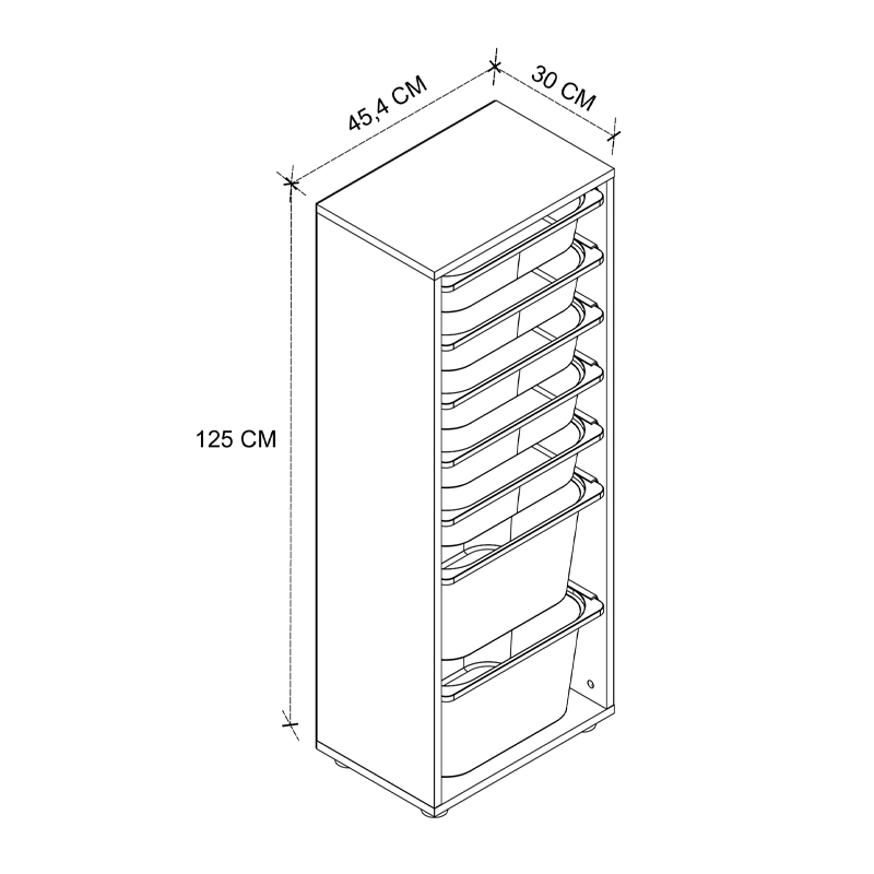 • Διαστάσεις: Μήκος 45,4 x Βάθος 30 x Ύψος 125 εκ.