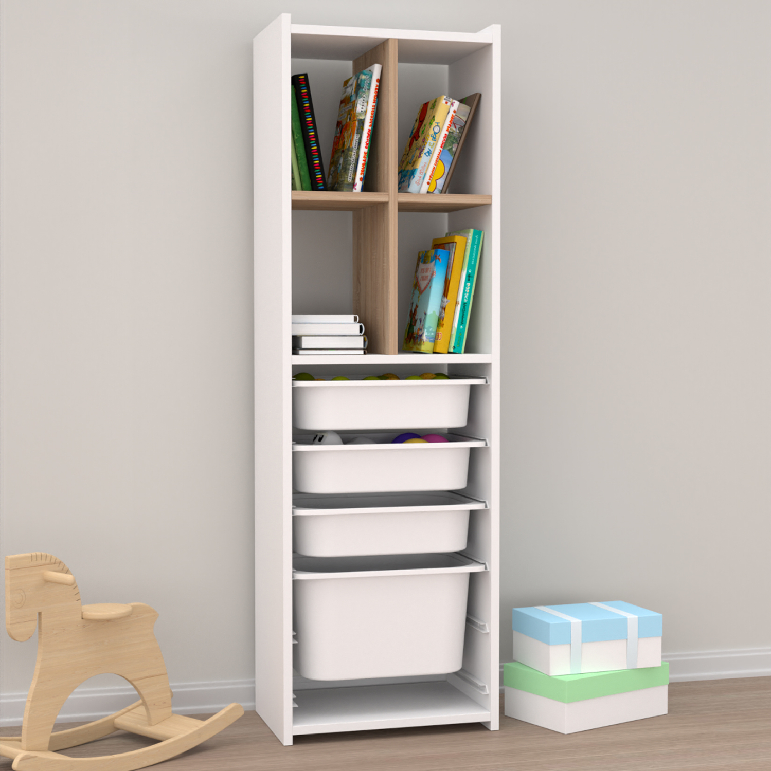 Η SANI είναι συρταριέρα με πλαίσιο από μελαμίνη σε χρώμα ΛΕΥΚΟ και SONAMA και 4 ΛΕΥΚΑ συρτάρια από πολυαιθυλένιο (πλαστικό) σε διαφορετικά μεγέθη. Ωστόσο, αυτό που κάνει αυτό το έπιπλο να ξεχωρίζει είναι ότι πάνω από τα συρτάρια διαθέτει 4 χώρους σαν ραφάκια για τοποθέτηση αντικειμένων. Ιδανική πρόταση για την καλύτερη οργάνωση του παιδικού δωματίου.