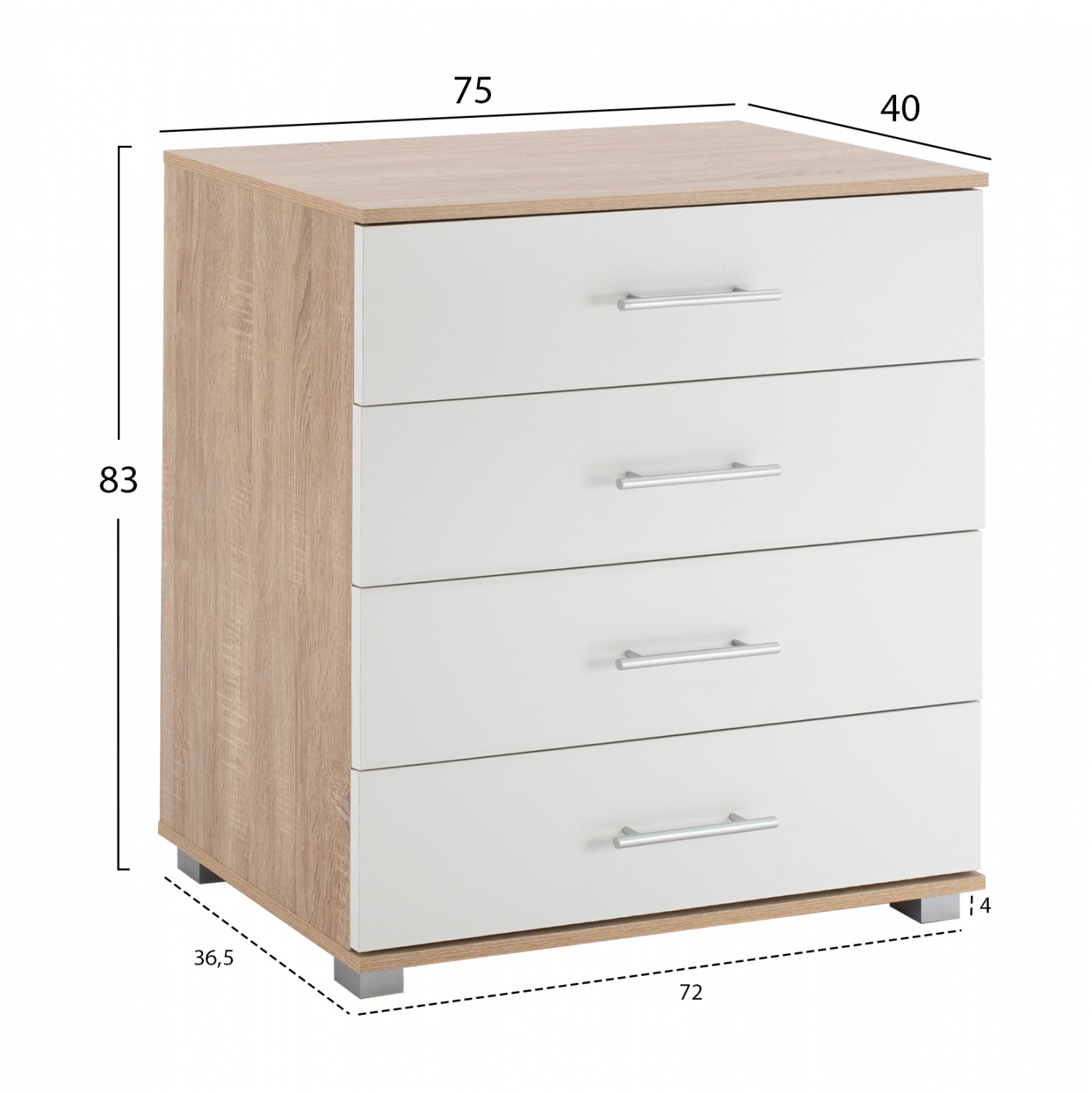 Διαθέτει τέσσερα ευρύχωρα συρτάρια για να τοποθετήσετε τα προσωπικά σας αντικείμενα.