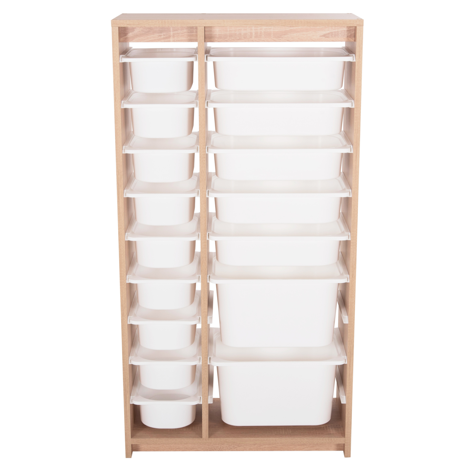 Η SANI είναι μια συρταριέρα με πλαίσιο από μελαμίνη σε χρώμα SONAMA, με 16 ΛΕΥΚΑ συρτάρια από πολυαιθυλένιο (πλαστικό) σε δύο στήλες με διαφορετικά μεγέθη. Ιδανική συρταριέρα για την καλύτερη οργάνωση του παιδικού δωματίου.