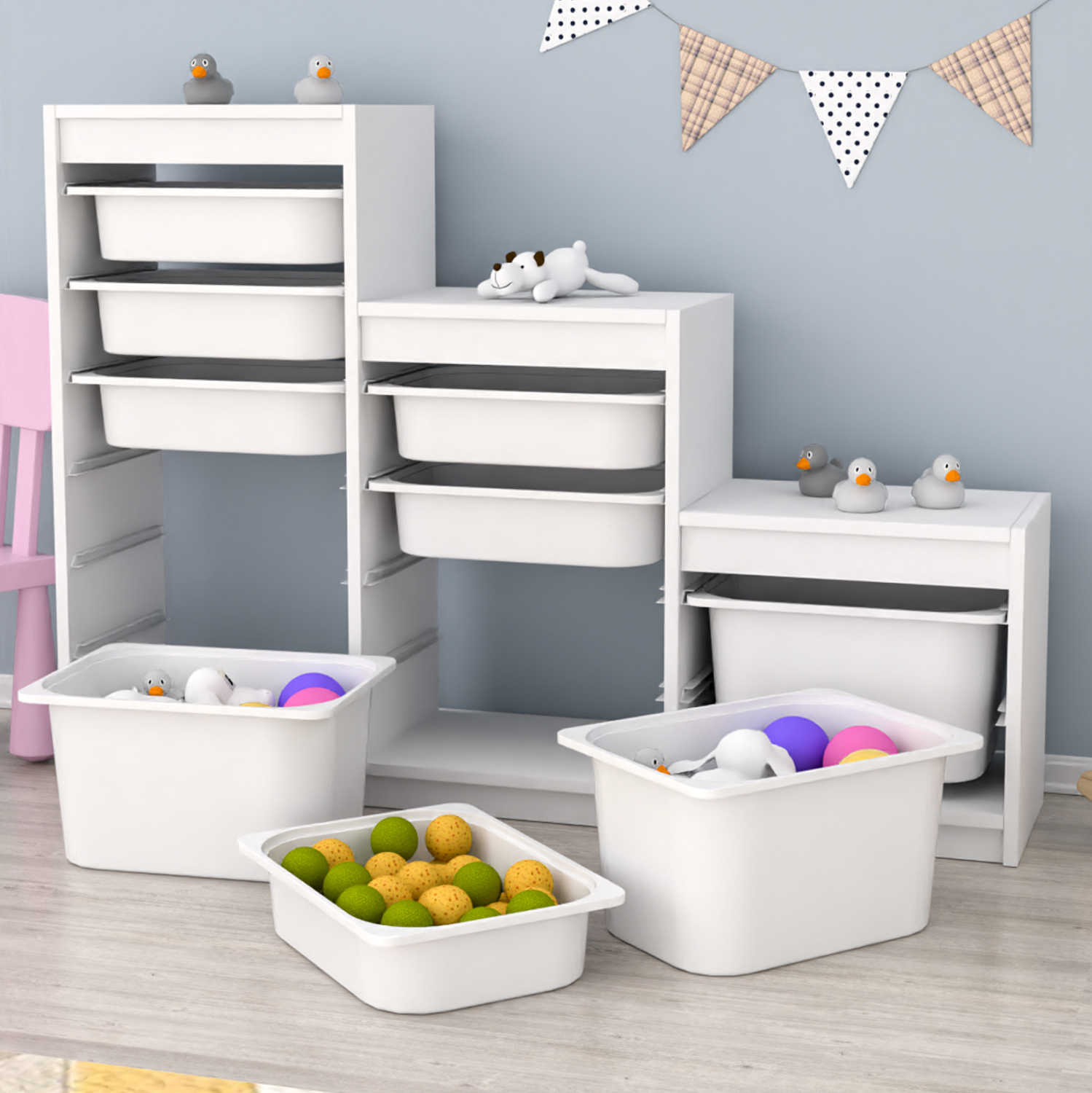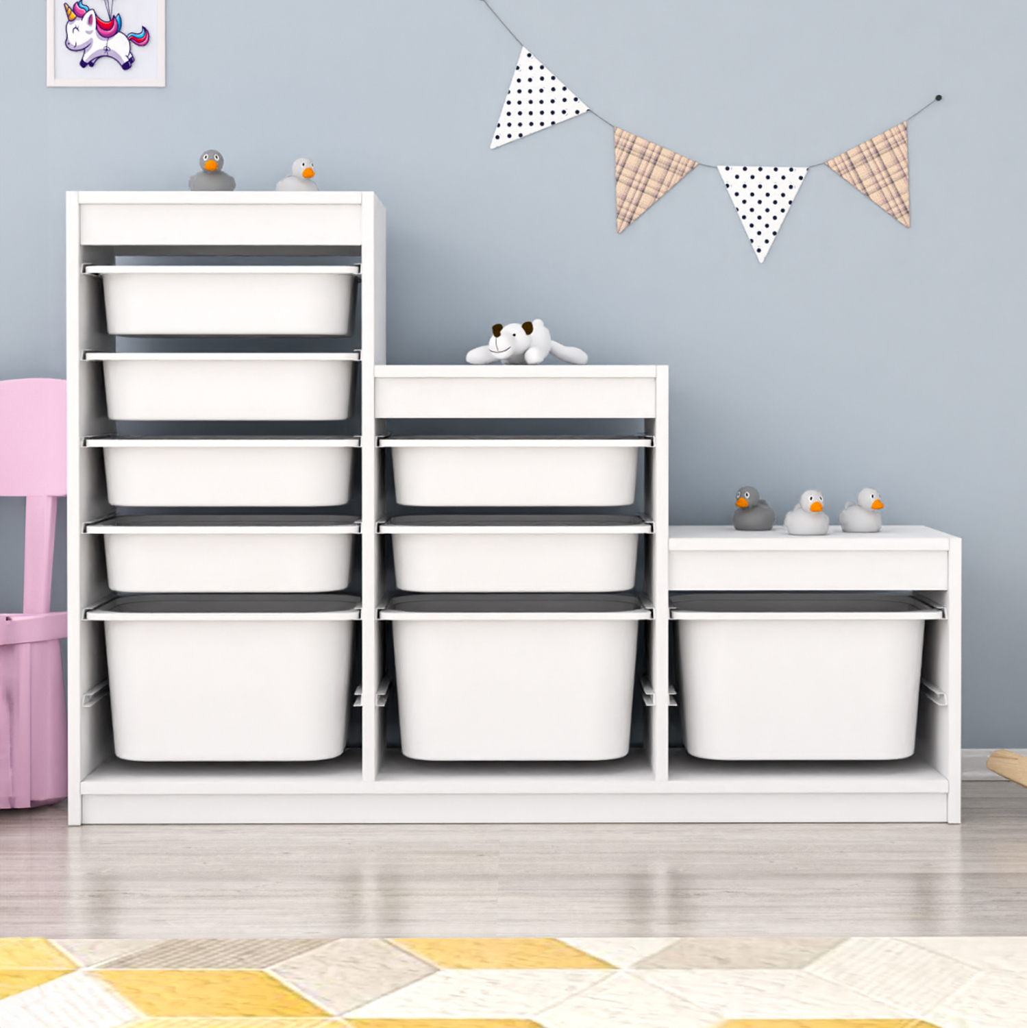 Η SANI είναι μια συρταριέρα με πλαίσιο από μελαμίνη σε χρώμα ΛΕΥΚΟ, με 9 ΛΕΥΚΑ συρτάρια από πολυαιθυλένιο (πλαστικό), σε 3 στήλες με διαφορετικό ύψος. Ιδανική συρταριέρα για την καλύτερη οργάνωση του παιδικού δωματίου.