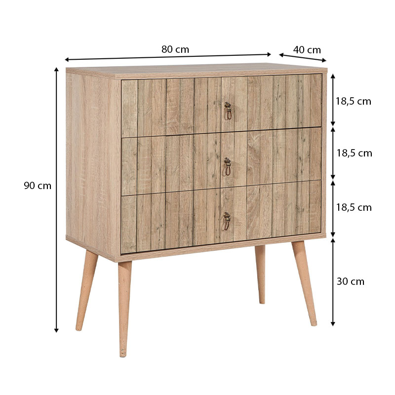 Συρταρτιέρα Soho Megapap από μελαμίνη χρώμα sonoma 80x40x90εκ.