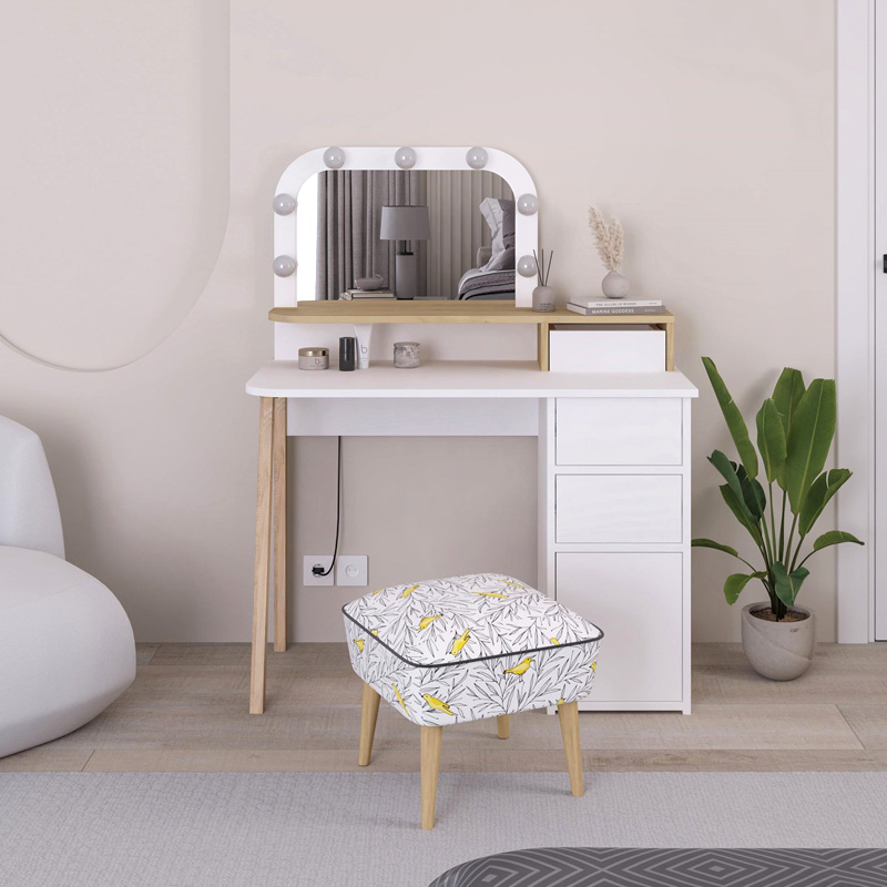 Η μοναδική τουαλέτα με καθρέπτη Avien, αποτελεί ένα ιδανικό έπιπλο για να προσθέσετε μια πινελιά στυλ και πρακτικότητας στον χώρο σας. Έχει σχεδιαστεί για να ταιριάζει τέλεια σε μικρά δωμάτια ενώ προσφέρει άφθονο χώρο αποθήκευσης.
