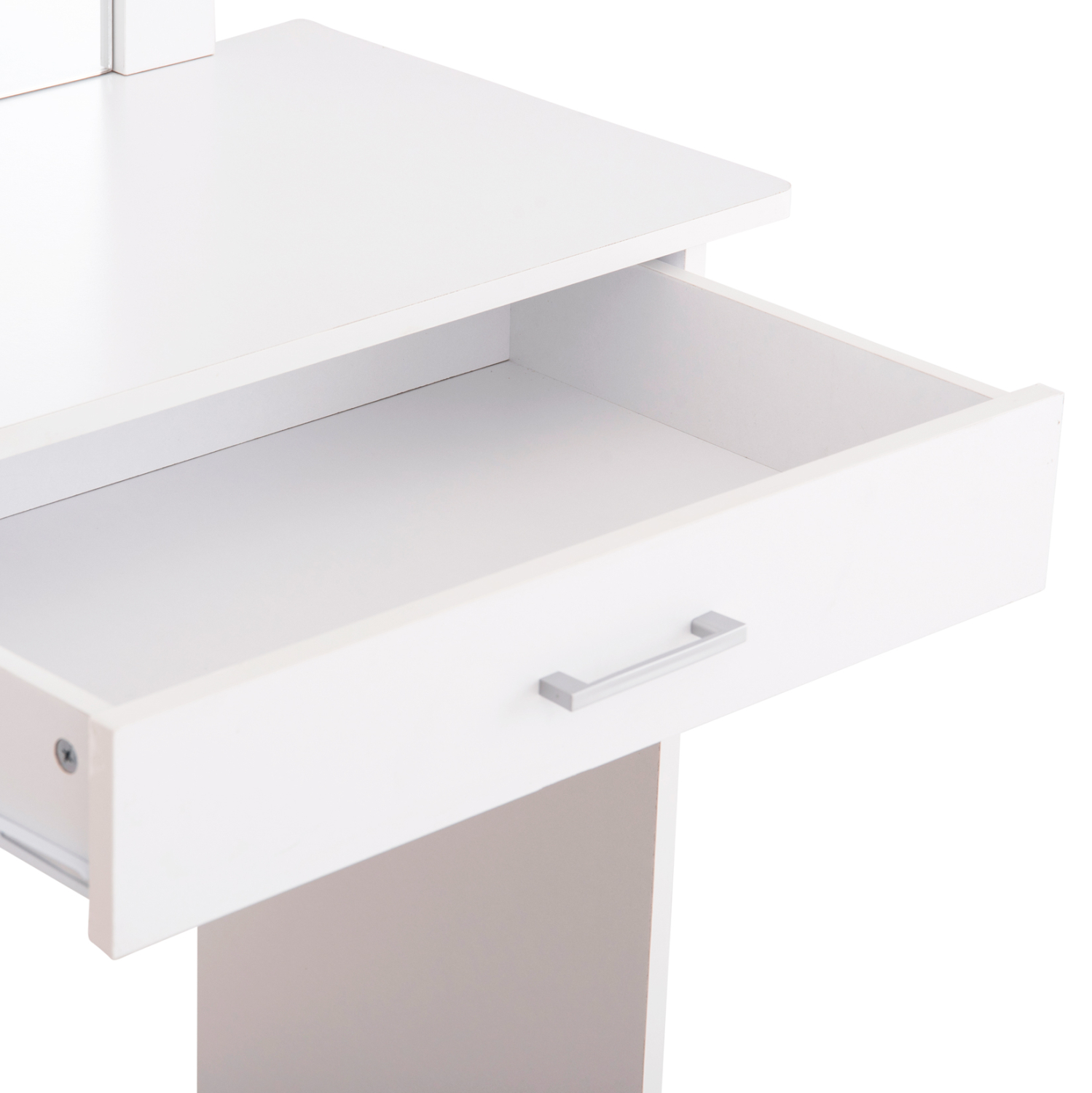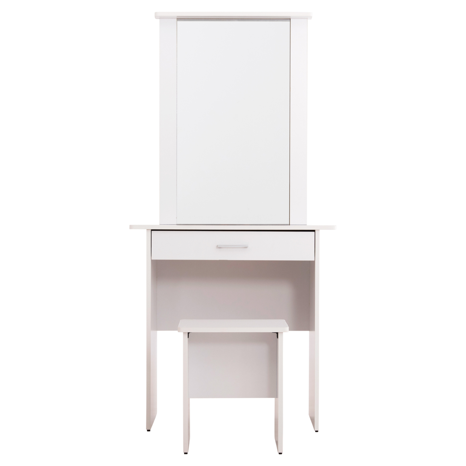 Το σετ τουαλέτας με καθρέπτη και σκαμπό CRYSTEL θα σας εντυπωσιάσει με τον λιτό κι απέριττο σχεδιασμό του. Το συρτάρι έχει ικανοποιητική χωρητικότητα ενώ συνολικά οι διαστάσεις αυτού του σετ το καθιστούν ιδιαίτερα βολικό για κάθε χώρο. Η κατασκευή του έχει γίνει από μελαμίνη σε χρώμα ΛΕΥΚΟ.