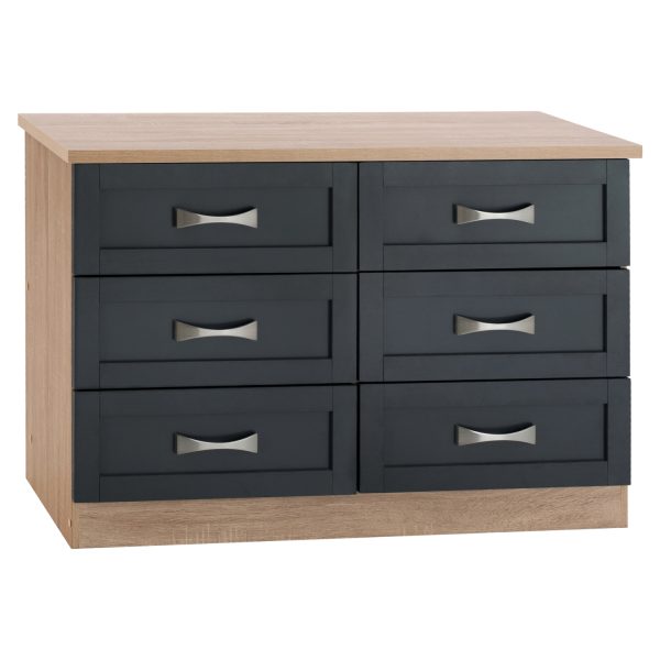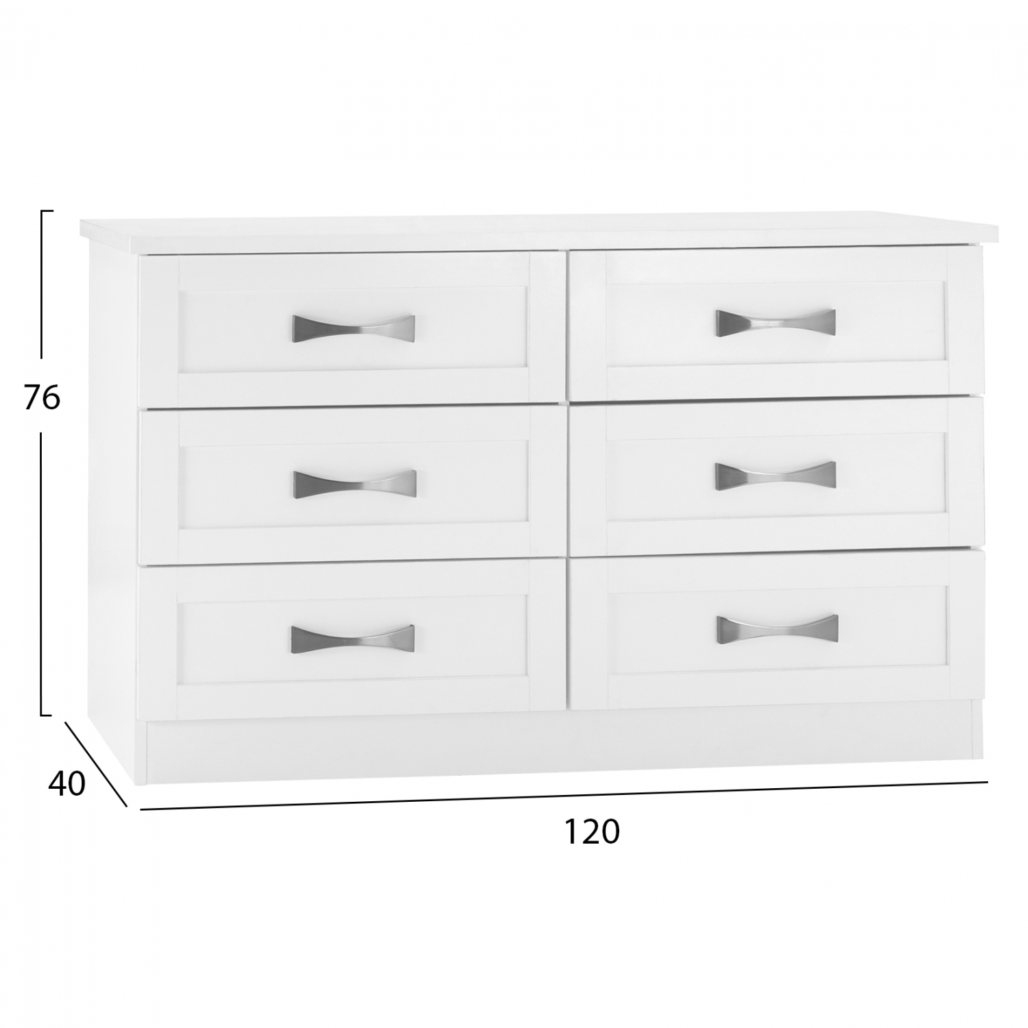 Διαθέτει έξι ευρύχωρα συρτάρια για να τοποθετήσετε τα προσωπικά σας αντικείμενα. Τα χερούλια είναι μεταλλικά σε ασημί απόχρωση.