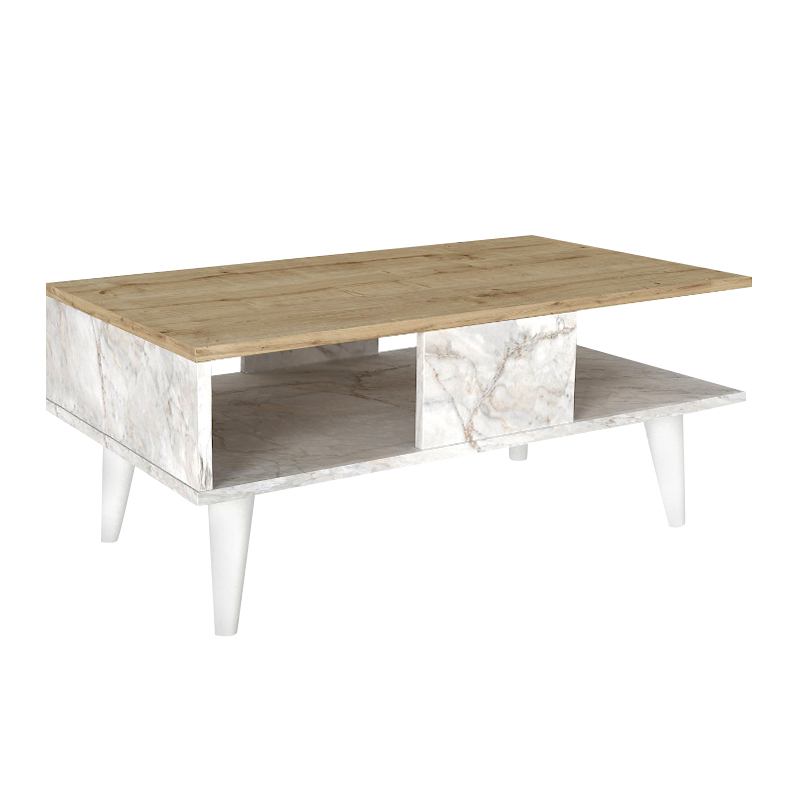 Τραπεζάκι σαλονιού Andros Megapap χρώμα sapphire oak – λευκό εφέ μαρμάρου 90x54x39,6εκ.
