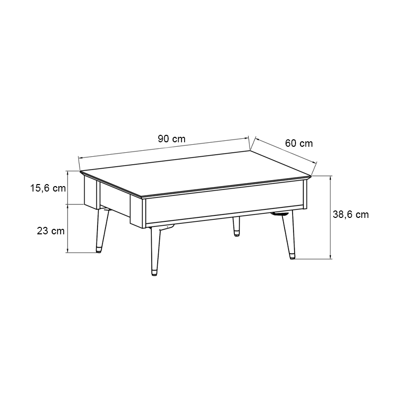 • Διαστάσεις: Μήκος 90 x Βάθος 60 x Ύψος 38,6 εκ.