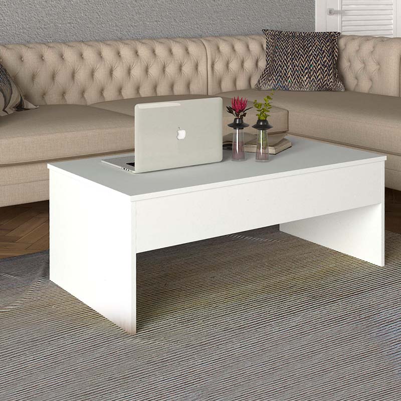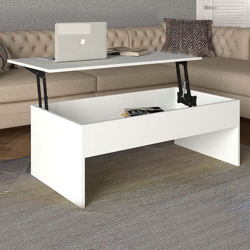 Το τραπεζάκι σαλονιού Devon διαθέτει μηχανισμό που επιτρέπει να σηκωθεί η επιφάνεια του σε θέση σερβιρίσματος για το φαγητό ή το laptop, δημιουργώντας χώρο για την αποθήκευση αντικειμένων στο εσωτερικό του.