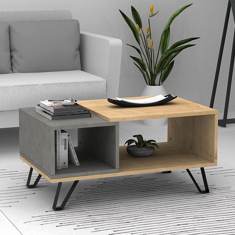 Τραπεζάκι σαλονιού Don Megapap μελαμίνης χρώμα sonoma – γκρι σκυροδέματος 90x55x44εκ.