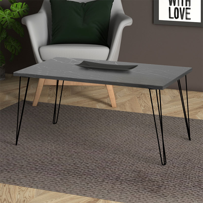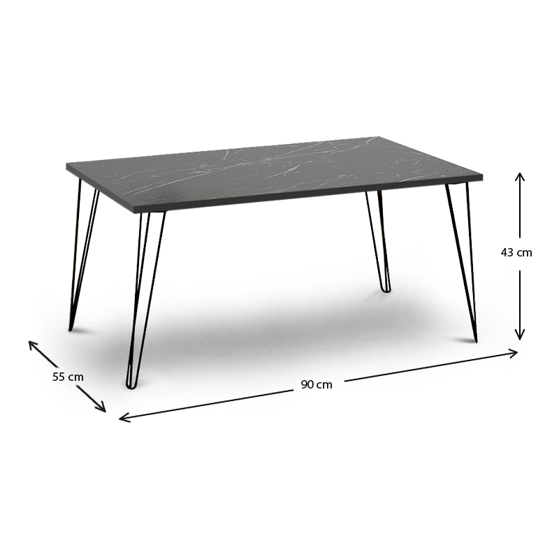 Τραπεζάκι σαλονιού Fiona Megapap μεταλλικό – μελαμίνης χρώμα μαύρο εφέ μαρμάρου 90x55x43εκ.